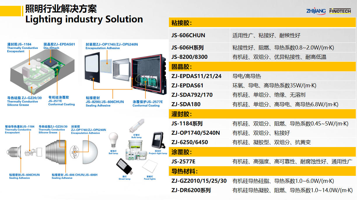 之江公司立足于中國膠粘劑行業領軍企業和有機硅、聚氨酯、環氧等專業膠粘劑的產業化優勢,具有國家高新技術企業和國家級企業技術中心資質,依靠國家級CNAS實驗室以及國家級博士后科研工作站,并有國際專家助力,通過系統創新為照明行業提供高性能膠粘劑解決方案。